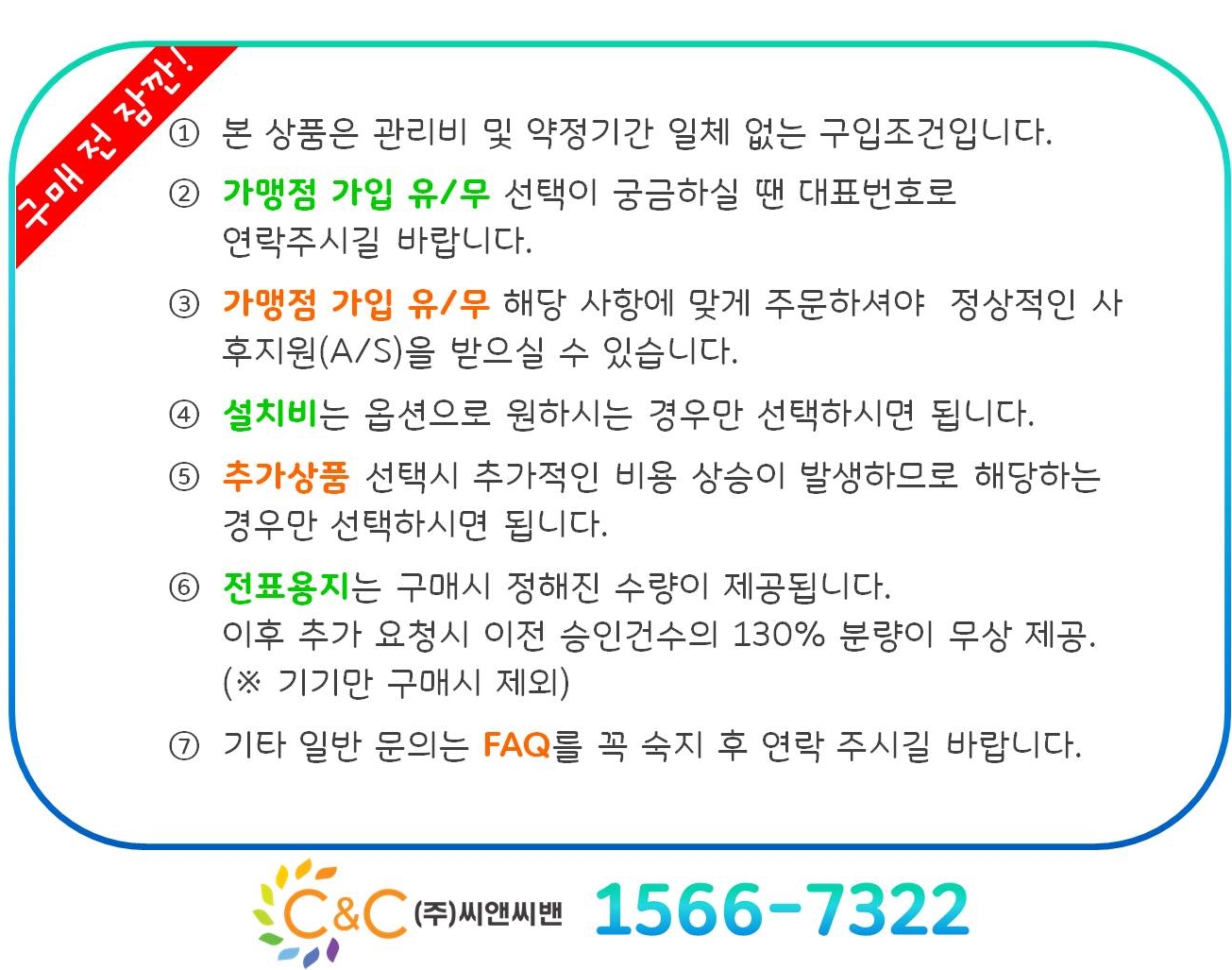 (※ 제품이상 및 주문 확인실수의 경우 - 배송비 (주)씨앤씨밴 부담