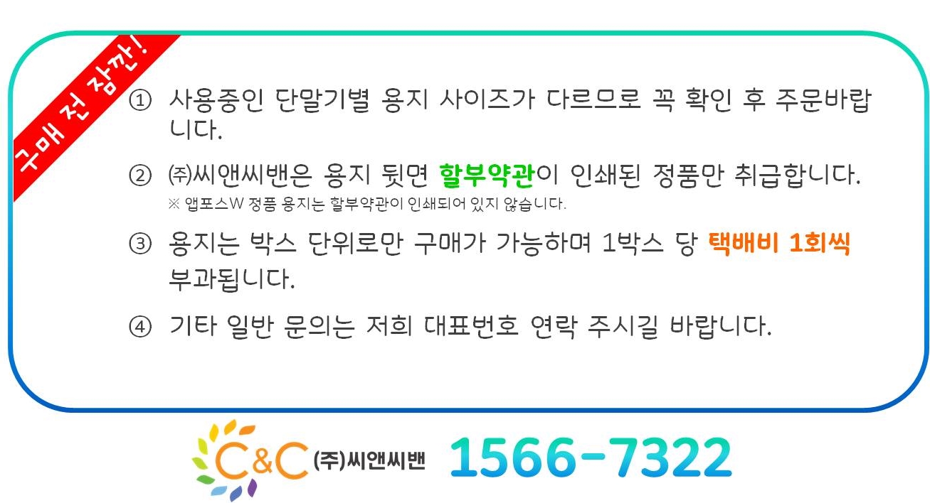 (※ 제품이상 및 주문 확인실수의 경우 - 배송비 (주)씨앤씨밴 부담