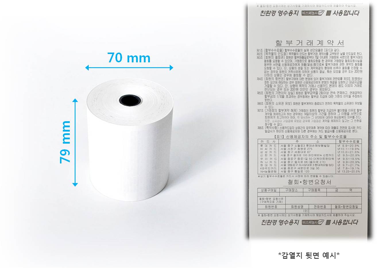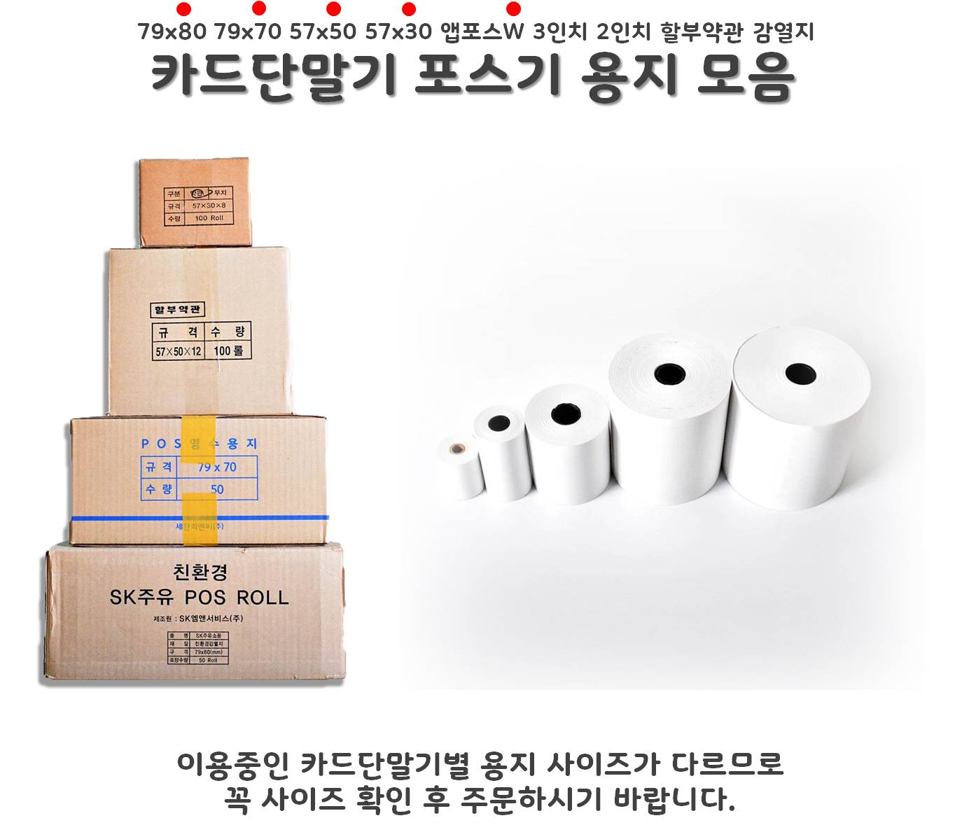 제품구매 > 용지 > [국산정품] 79X80 70 57X50 49 30 3인치 2인치 친환경 앱포스W POS 포스 포스기 카드단말기 키오스크 금전등록기 주차장 택시 배민 배달 혈압계 전표 용지 감열지 영수증